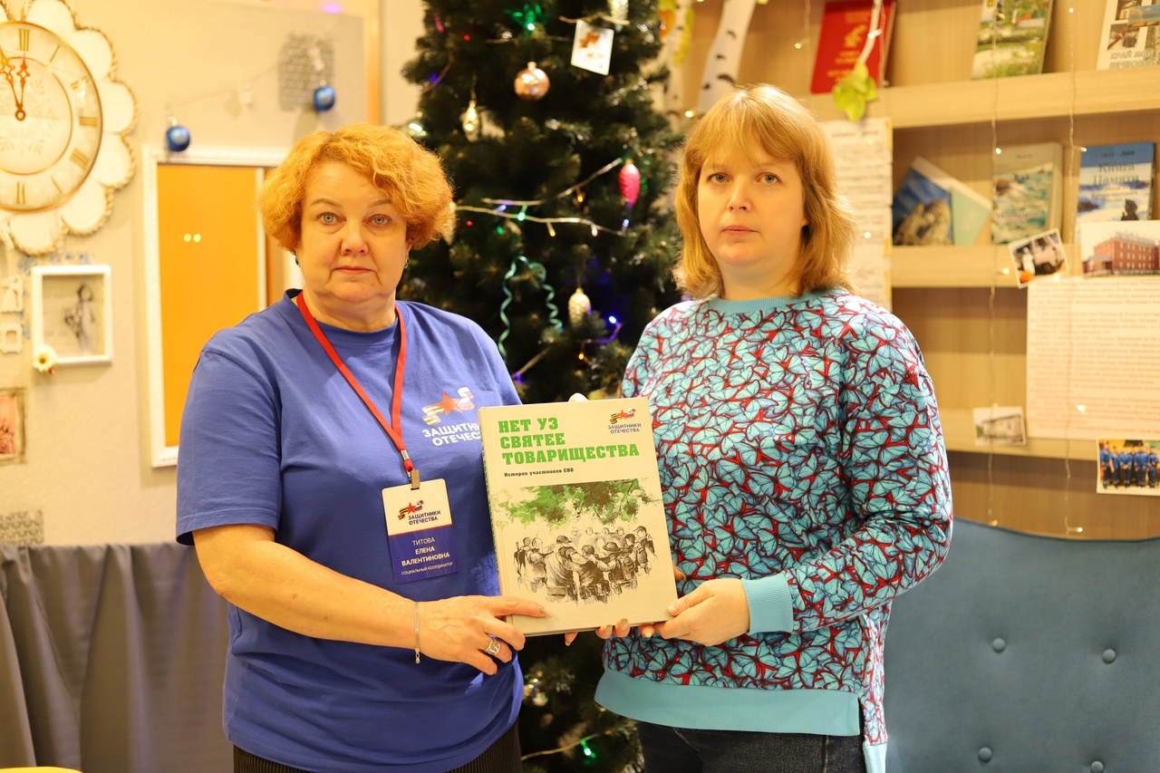 26 декабря Елена Валентиновна Титова, социальный координатор государственного фонда "Защитники Отечества" в Березовском муниципальном округе передала в Березовскую центральную библиотеку им. Ф.Ф. Павленкова новую книгу - "Нет уз святее товарищества. Истории участников СВО".