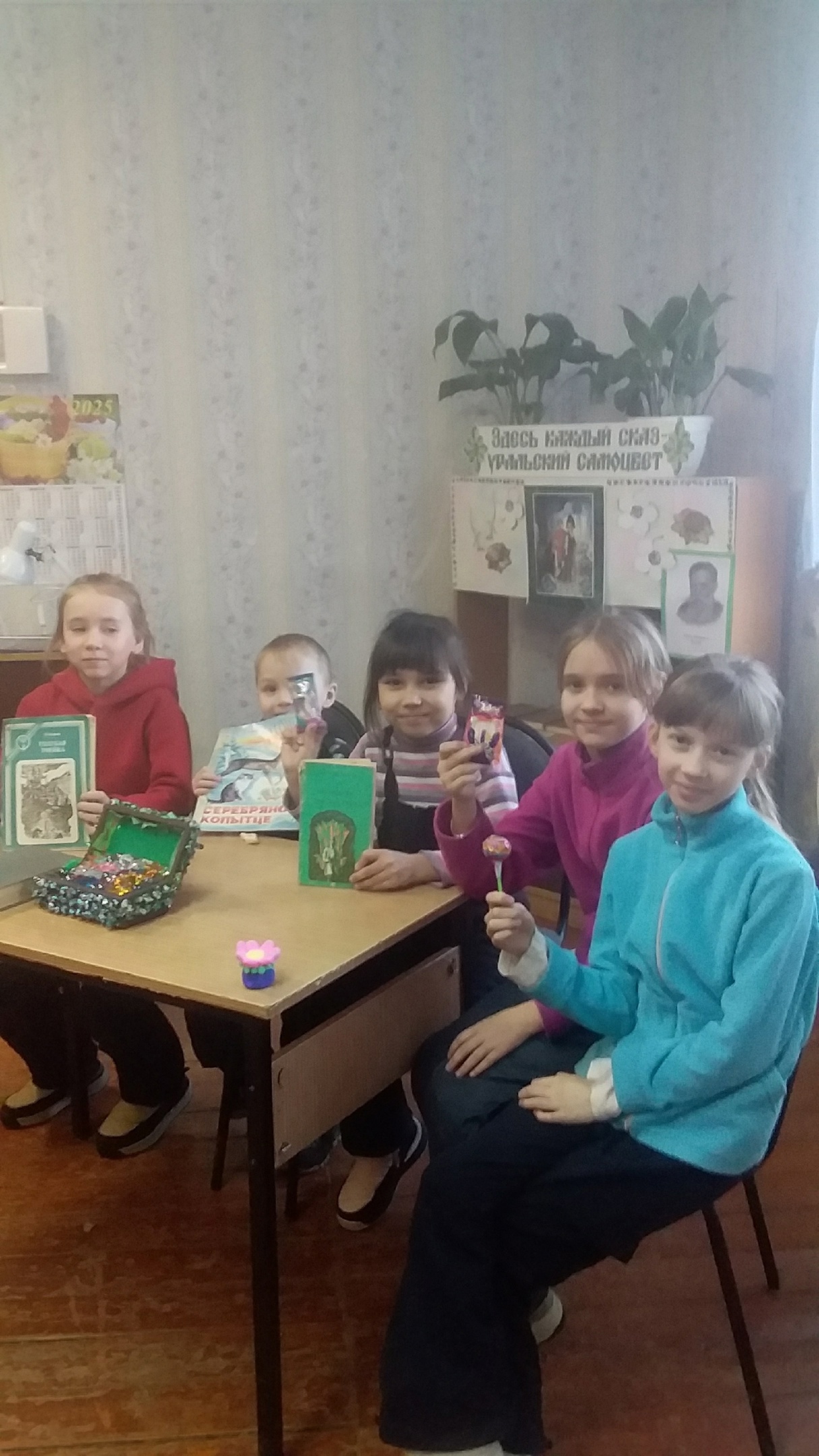 18 января в Тазовской сельской библиотеке для младших школьников прошла игровая программа «Шкатулка сказов Павла Бажова», посвященная творчеству Павла Петровича Бажова. На мероприятии ребята познакомились с интересными фактами из биографии чародея уральских сказов, а также с книжной выставкой «Здесь каждый сказ - уральский самоцвет», на которой были представлены книги П. П. Бажова из фонда библиотеки. В ходе мероприятия, разделившись на две артели «Яшма» и «Малахит», ребята узнавали героев по описанию, передавали «камни-самоцветы» под веселую музыку, проявили ловкость в игре «Золотоискатели», лепили из пластилина Данилин каменный цветок, собирали «уральские самоцветы». За каждое выполненное задание артели получали камень «драгоценный». Победителем стала артель «Малахит». В конце мероприятия все дети получили сладкие призы. Было очень увлекательно и познавательно!